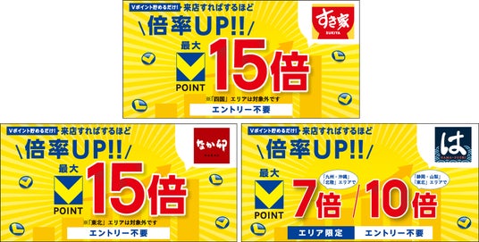 CCCMKホールディングス株式会社(本社:神奈川県横浜市、代表取締役社長兼CEO:高橋 誉則、以下「CCCMKHD」)は、ゼンショーグループ傘下の「すき家」「なか卯」のご利用で最大15倍、「はま寿司」では、北陸・九州・沖縄は最大7倍、東北・静岡・山梨は最大10倍のVポイントがもらえるキャンペーンを2026年2月1日(日)から2026年2月28日(土)まで開催いたします。