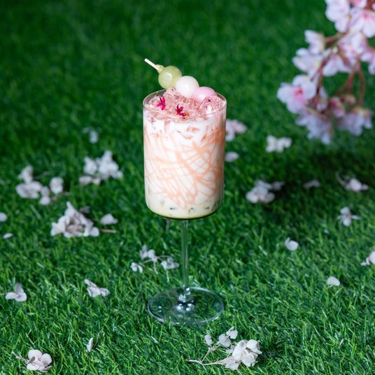 「飲むお団子」をテーマにした、三層の贅沢スムージー。 濃厚抹茶ミルクの上に、 団子と桜アイスを合わせて“もちもち・ふわとろ”に仕上げた桜アイススムージー、さらに食感のアクセントとして桜のシロップとスパークリングジュレを重ねました。仕上げの三色団子とともに、ドリンクの枠を超えた新食感をお楽しみください。
