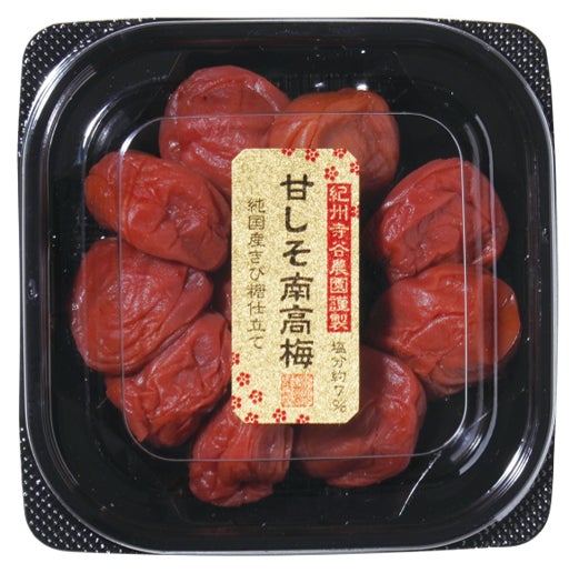 良質な南高梅を自家製「薫りしそ」とりんご酢、種子島産の粗糖で漬け込んだ甘酸っぱいしそ漬け梅干しです。※塩分約7%