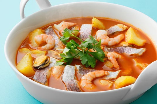 ふっくらとした姫鯛に、魚介の旨みが溶け込んだブイヤベースを合わせてサフランをきかせた「姫鯛のブイヤベース」。