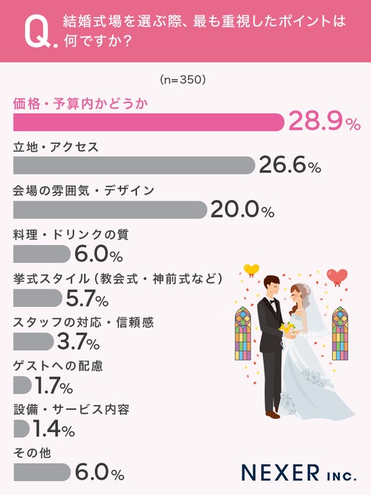■28.9%が、結婚式場を選ぶ際に「価格・予算内かどうか」を最も重視したと回答