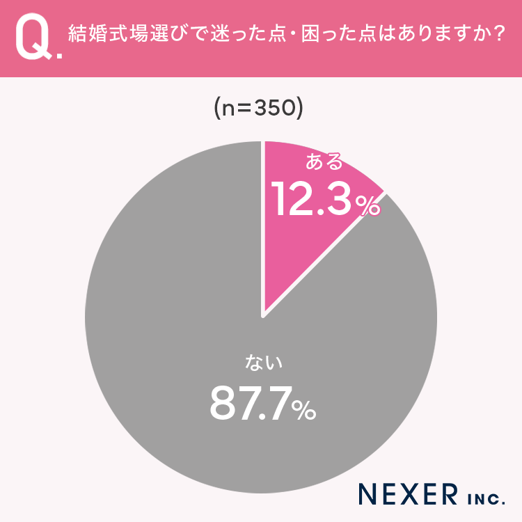 その結果「ない」が87.7%、「ある」が12.3%となり、約9割の方がスムーズに式場選びを進められたことがわかりました。