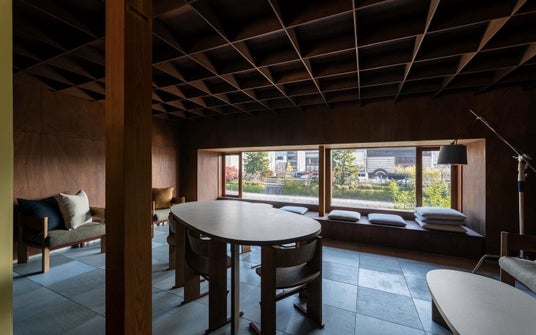 町家を長年支えてきた立派な柱や梁はそのまま残し、窓際には小上がり席を設置。