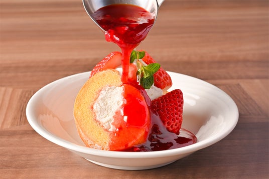 ワゴンサービスでは、パティシエがお客様の目の前で仕上げる「ベリー香るロールケーキのデコレーションサービス」をご提供いたします。ロールケーキを色鮮やかなベリーソースやトッピングで華やかに彩る様子は、ライブ感たっぷり。