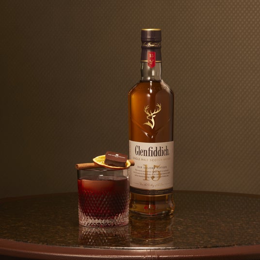 シェリー樽熟成由来の甘みとスパイシーさが特徴の「グレンフィディック 15年」をベースに、ベルモットロッソ、カンパリ、そしてチョコレートの風味を重ねました。クラシックなカクテルをモダンにアレンジした、大人の男性に捧げる深みのある味わいです。
