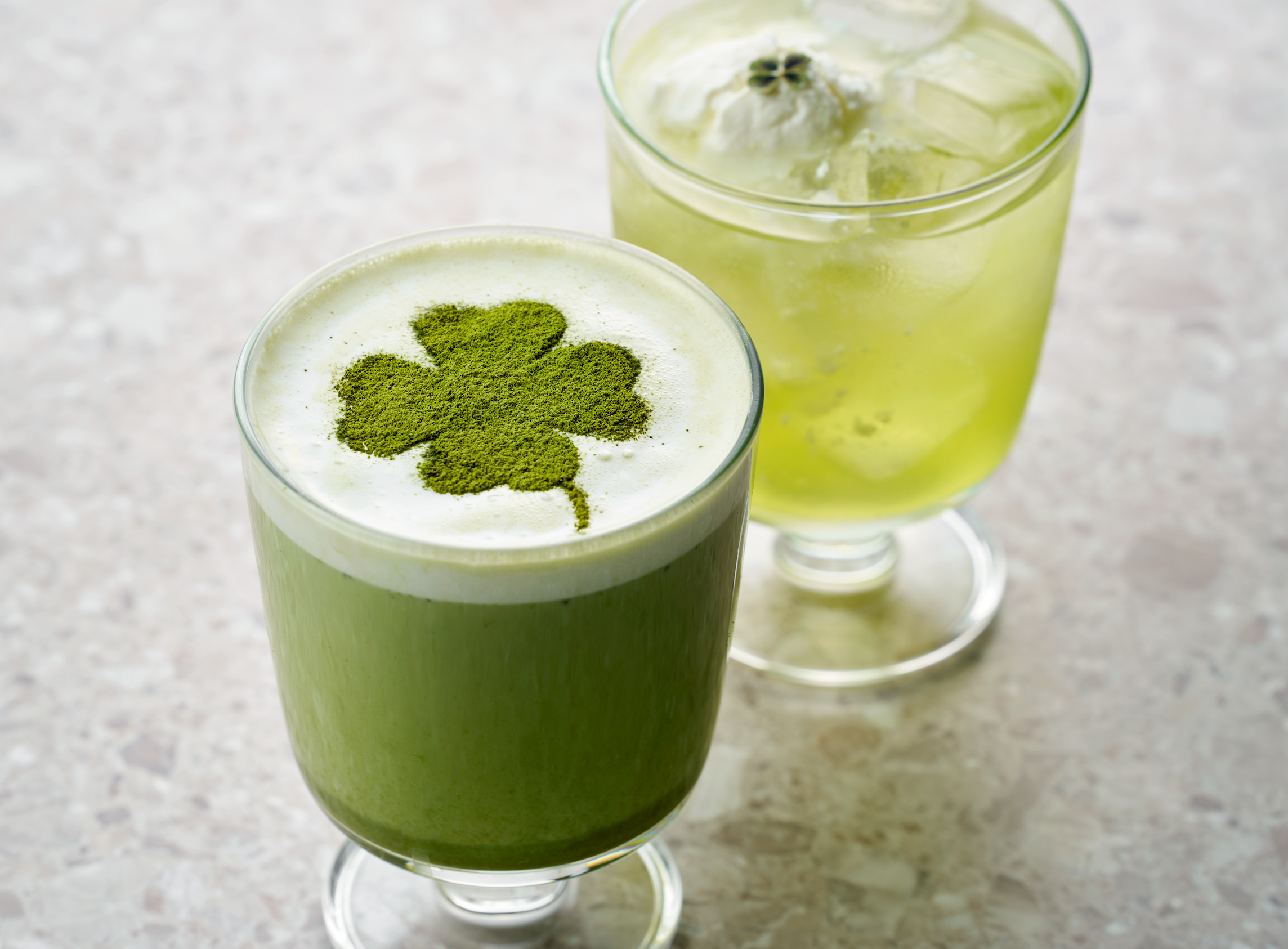 左:クローバー抹茶ラテ、右:クローバーキウイヨーグルトソーダ