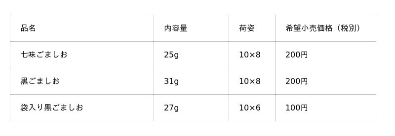 ※赤唐辛子(乾燥・焙煎)、黒ごま、ちんぴ、白ごま(煎りごま・すりごま)、しょうが、あおさ、