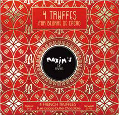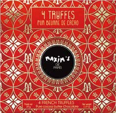 トリュフチョコレート4個入 口どけ良く深いコクのある大粒のチョコレートトリュフを個包装にして封入いたしました。