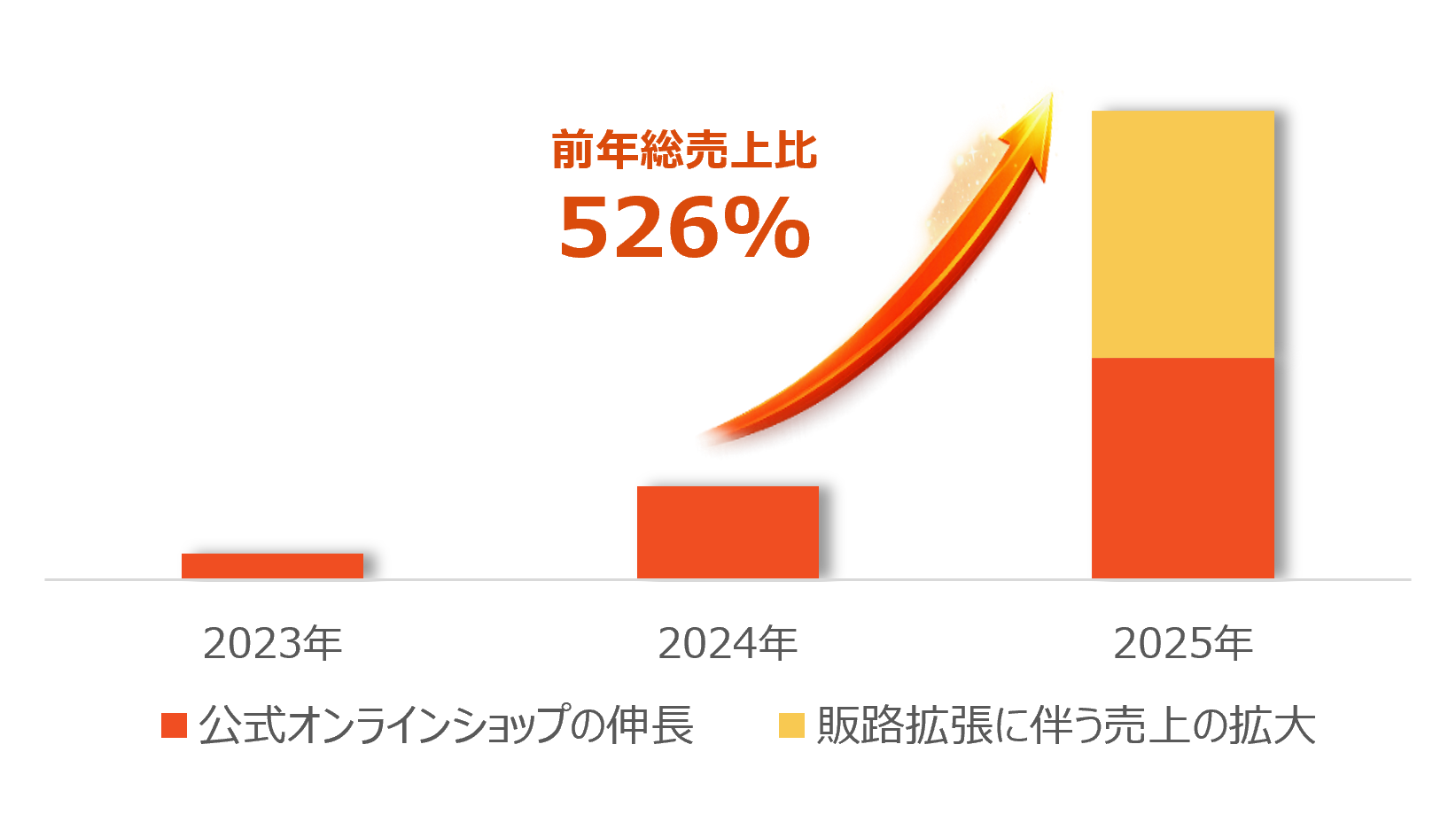 ※公式オンラインショップおよび外部モールや業務用での売上を含む、BEYOND FREEブランド全体の2025年総売上の前年比