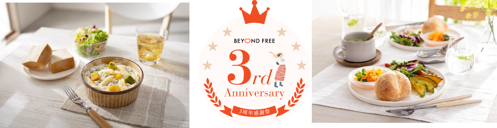 BEYOND FREEは、おかげさまでブランド開始から3周年を迎えました。これまでの感謝の気持ちを込めて、3周年記念の「サンキューセール」を実施いたします。いつもご利用いただいている方はもちろん、気になっていたけれどまだ試したことがない方にも、植物性のやさしい食事を気軽に体感していただける機会です。