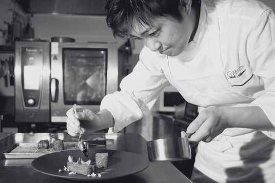 2026年、地元奈良に Apercu をオープン。料理を“研究発表のように届ける”という姿勢を根幹に置き、記憶の一端に残るレストラン体験の創造を追求している。