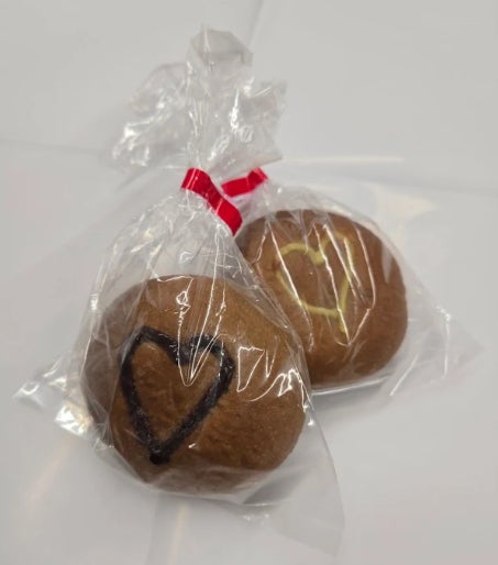 パンの表面には、工房の方がチョコペンで可愛らしいハートマークを描いてくれています。