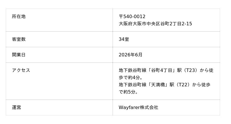 本件は、Wayfarerにとって日本国内14施設目のプロジェクトとなります。また、2026年における成長案件の第一号として位置づけられ、今後は関西での展開をさらに強化するとともに、東京および福岡への進出も見据え、来年以降も複数の成長プロジェクトの推進を予定しております。