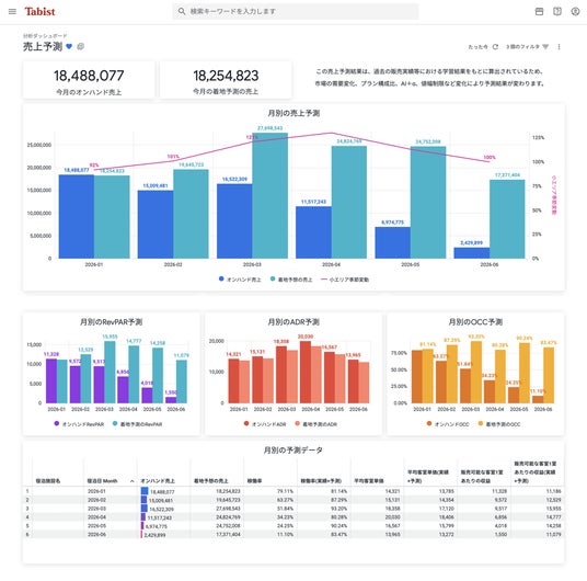 「Tabist BI(データ分析可視化ツール)」において、過去の販売実績や需要動向を基にAIが算出した将来の売上予測(フォーキャスト)を可視化する機能の提供を開始しました。