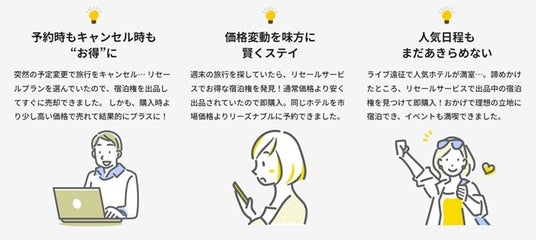 昨今の働き方や旅のスタイルの多様化に伴い、リモートワークやフレックス制度、仕事と旅行を組み合わせた旅程などの広がりによって、出張・旅行の予定が直前に変わるケースが増えています。その一方で、従来の「割安だが返金不可」の宿泊プランは変更・返金ができないため、使えなくなった予約がそのまま損失になってしまうなど、柔軟性に欠ける課題がありました。こうした背景を踏まえ、本サービスは、急な事情で予約*を利用できなくなった出品者の心理的負担を軽減し、手間なく次の利用者へ引き継げる仕組みをご提供いたします。また、購入者に対しては、通常は満室で予約が取りづらい日程でも宿泊の機会を確保できるようにし、直前の計画変更にも対応しやすい選択肢をご用意いたします。予約の有効活用を支援することで、出品者・購入者のご利用者皆さまの利便性や満足度の向上につながるよう取り組んでまいります。