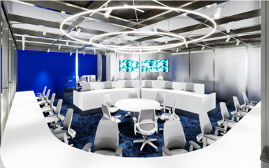 【ショールーム】約200インチのLEDビジョンと病院内のSPD管理環境(手術室・カテーテル室・病棟)を設置し、各環境に応じた管理体制や、RFIDゲート検品等のソリューションを体験できます。
