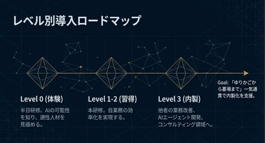 - コンサルティング: 3ヶ月間(4名固定体制で、レベル2~3の人材をレベル4へ引き上げ、内製化・自動化を支援)
