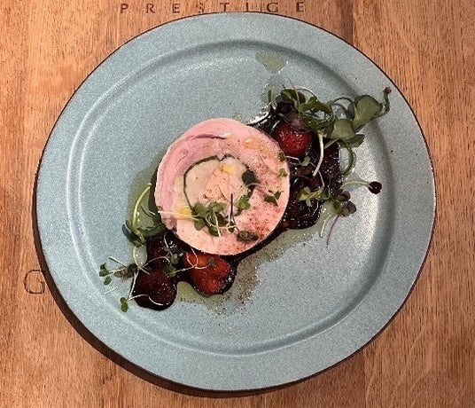 FLAMINGO/栃木しゃもとフォアグラのバロンティーヌ 栃木県産いちごのソース ※「とちあいか(いちご)」使用/¥1,400-