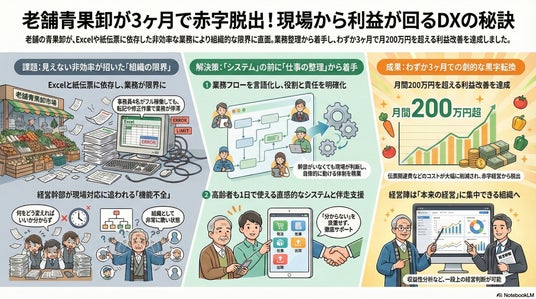 青果卸が3か月で赤字脱出、月200万円超の利益改善。鍵は受発注(Smart Order)と仕入在庫(新サービスSmart Stock)を一気通貫でつなげたことでした。