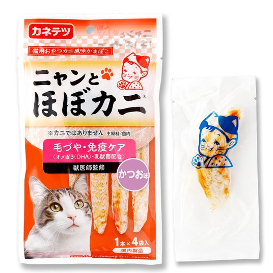 商品名称:ニャンと ほぼカニ(R) 毛づや・免疫ケア かつお味 オメガ3・乳酸菌配合