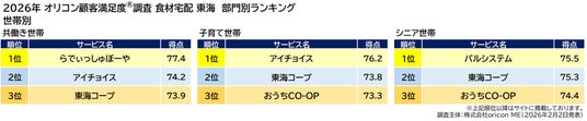 『食材宅配 東海』部門別ランキング(2026年 オリコン顧客満足度(R)調査)