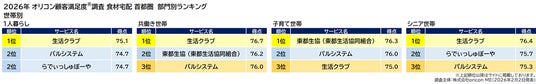『食材宅配 首都圏』部門別ランキング(2026年 オリコン顧客満足度(R)調査)