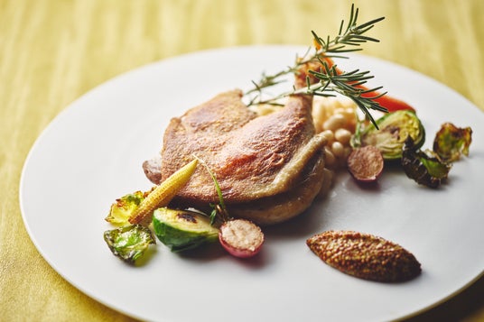 メインディッシュは、時期に応じた旬の鮮魚をシェフおすすめの調理法で仕上げた一皿をはじめ、真鱈のスチームシェルフィッシュソース、自家製キュアポークのポトフ 北海道野菜添え、骨付き鶏もも肉の赤ワイン煮込み クスクス添え、熟成牛サーロインとプレミアムメークインのステークフリット(+5,000円)など、冬らしいビストロノミーを感じるメインディッシュの中からお好みの一品をお選びいただけます。出来立てをテーブルまでお持ちいたします。