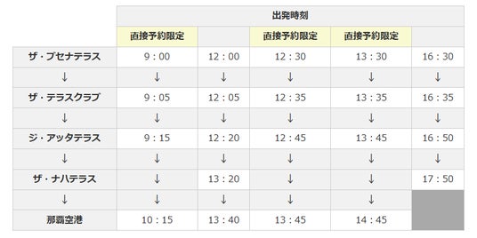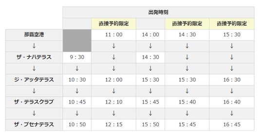 ※9:30発の便はザ・ナハテラス始発となります