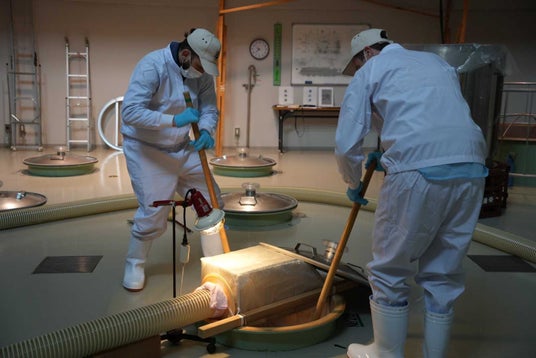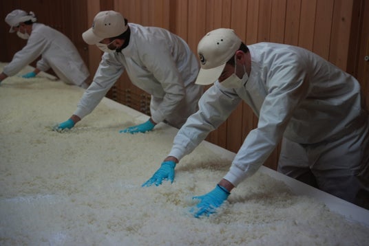 ギリシャからの研修生が蒸したコシヒから米麹を造る様子