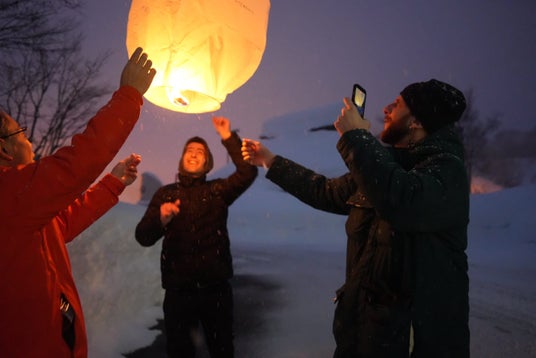 願いを込めたランタンを津南の空に放つ様子