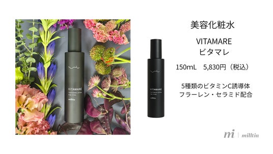 ミルティア株式会社(本社:東京都豊島区)は、5種のビタミンC誘導体を配合した美容化粧水【VITAMARE(ビタマレ)】(150mL 5,830円税込)を2026年1月13日より発売開始いたしました。