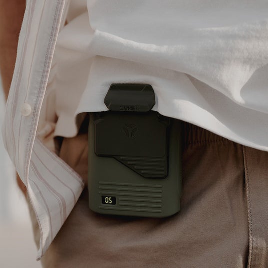 「CLIP FAN」は、ベルトやパンツのウエスト部分に装着して衣類の内側に直接風を送ることができる、ハンズフリー仕様のポータブルファンです。