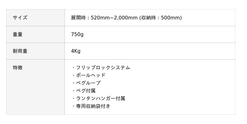 ワンアクションでの展開やフリップロックシステムによる高さ調整など、設営のしやすさと安定性を向上させました。