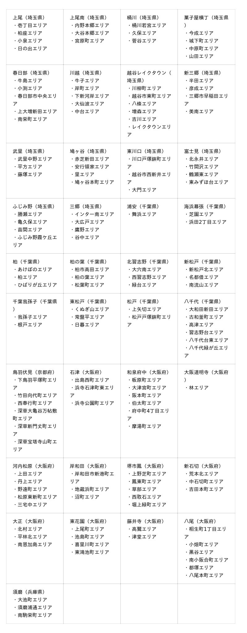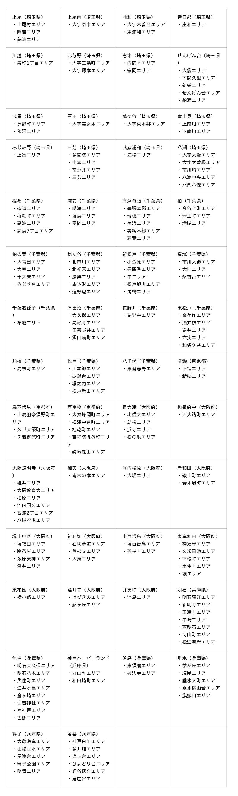 新たに公開となる161エリアは、首都圏では埼玉県34エリア、千葉県49エリア、東京都2エリア、関西圏では京都府8エリア、大阪府33エリア、兵庫県35エリアです。これまで提供範囲外であった地域にも対応することで、日々の食事や買い物における選択肢が広がります。