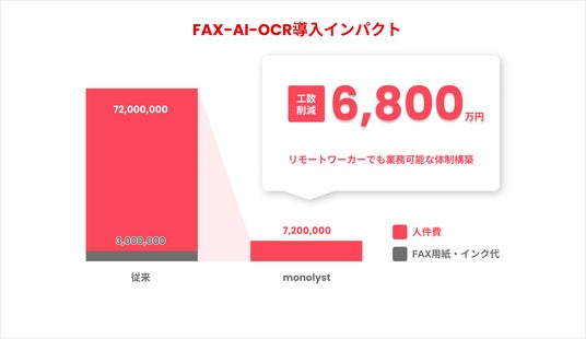 monolyst株式会社(本社:東京都渋谷区、代表取締役:伊関 洋介、以下「当社」)が提供する、初期設定不要で手書きも簡単にデータ化する「FAX AI-OCR」が、サービス開始から累計処理枚数10万枚を突破いたしました。これにより、導入企業全体で15,000時間の入力業務削減を実現しました。