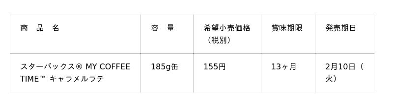 スターバックス・コーポレーション(本社:米国 シアトル、CEO:ブライアン・ニコル)と、サントリー食品インターナショナル株式会社(本社:東京都、社長:小野真紀子)は、ご好評いただいているショート缶コーヒーシリーズより、新フレーバーの「スターバックス(R) MY COFFEE TIME(TM) キャラメルラテ」を、2月10日(火)から発売します。