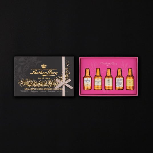 シングルトンウイスキーなど5種類のウィスキーを使用したコレクションです。スモーキーな香りやフルーティーな味わいなど、それぞれのウイスキーの個性をダークチョコレートとともにお楽しみいただけます。