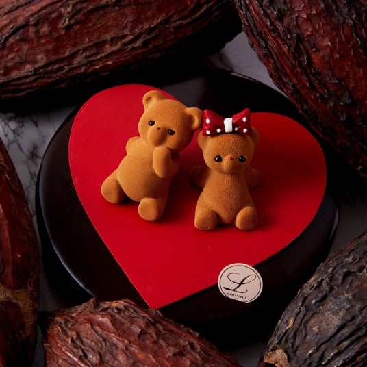 ヌーミーとエイミーがハートの上でそっと寄り添う、思わず笑顔がこぼれる愛らしいデザインのショコラタルト。やさしい気持ちをかたちにしたような佇まいは、大切な人へ想いを伝えるバレンタインギフトにふさわしい逸品です。