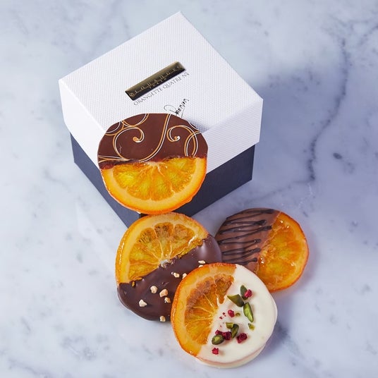 みずみずしい国産オレンジと、4種のブランドチョコレートが織りなす華やかなハーモニー。国産オレンジをセミドライに仕上げることでフレッシュ感を残し、それぞれ異なる個性をもつチョコレートとの絶妙な組み合わせを楽しめる、フルーティーなチョコレートです。