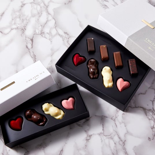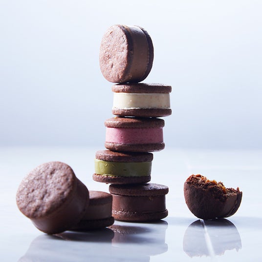 世界大会で優勝したパティシエが手がける、シャンパンやワインとのペアリングを楽しむ大人のためのショコラサンド。チョコレートの中には、多彩なコフィチュールやクリームを贅沢に閉じ込め、ひと口ごとに異なる味わいと食感が美しく広がります。お酒とともにゆったりと味わいたい、洗練されたひとときを演出する逸品です。