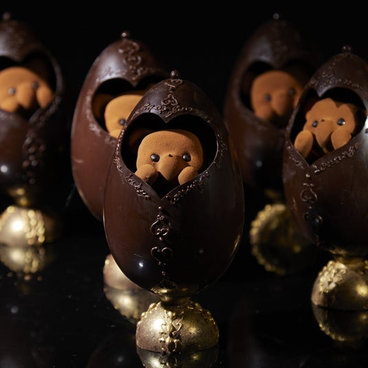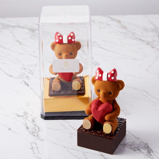 プレゼントにぴったりな、チョコレートでできたテディベア「ヌーミー」。板チョコをかじった食いしん坊な姿が愛らしい、心ときめくショコラボックスです。ボックスの中には、2種類のボンボンショコラを忍ばせ、見た目の可愛らしさと味わいの両方をお楽しみいただけます。贈る瞬間まで笑顔を引き出す、特別なバレンタインギフトです。