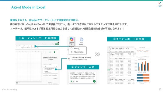 今後は、本ガイドのような最新ナレッジの無償提供を継続するとともに、法人向けには、実装されたばかりのエージェント機能を実務フローに組み込むための伴走型研修プログラムや、個々のスキルレベルを客観的に可視化する「Excelスキル診断・Copilotリテラシー診断」などのサービス提供を加速させてまいります。Microsoft 365と生成AIを組み合わせた多様な学びの機会を提供することで、すべてのビジネスパーソンがAIの恩恵を受けられる社会の実現を目指します。【関連情報】
