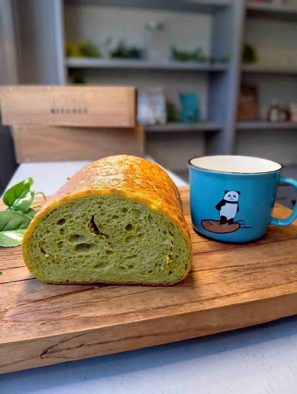 ピスタチオ(ハーフ)¥2,000税込 ピスタチオペーストで色付け、さらに練り込まれたナッツの食感とコクが後を引きます。