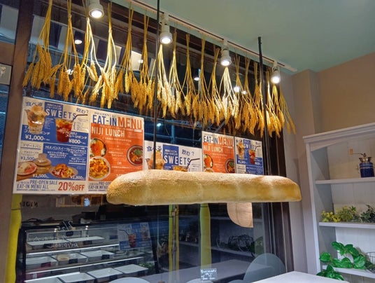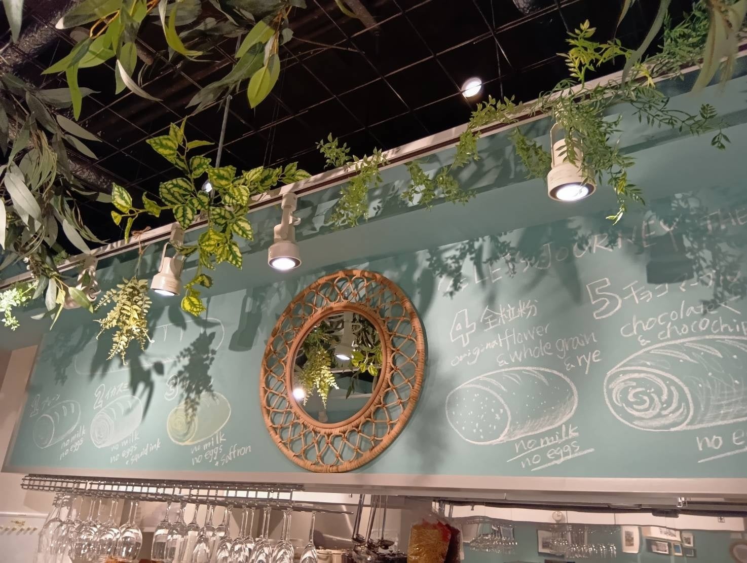 店内では特注の生ソフトフランスパンのオリジナル照明がお出迎え