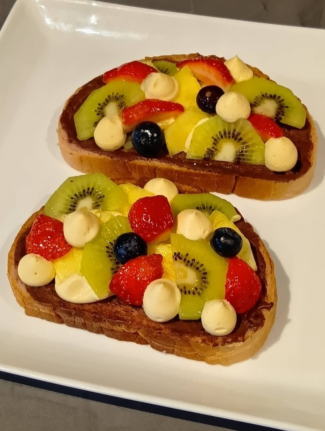 フルーツカスタードクリームのブルスケッタ フランボワーズフレーバー使用 ¥800税込