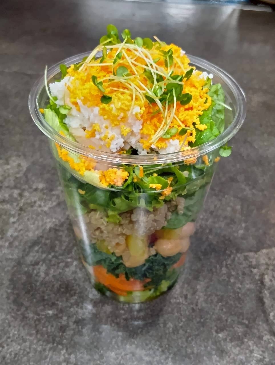 11品目のNIJIサラダは、グルテンを気にされる方にもNIJIの食材へのこだわりを感じて欲しいという想いから、美と健康を意識したタンパク質と食物繊維、容量もたっぷりのワンハンドサラダです。