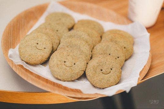 ▲よもぎ蒸しで使う茶葉と同じ葉を練り込んだよもぎクッキー(商品名:食べるよもぎ)