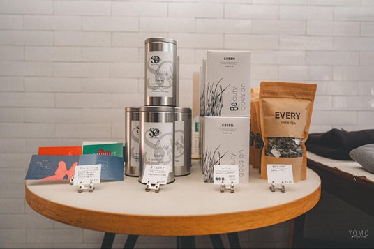 YOMOからは、オプションサービスとして提供しているよもぎ茶「飲むよもぎ」やよもぎクッキー「食べるよもぎ」、カラフルなオリジナルギフトカードや腸活ドリンクを販売。