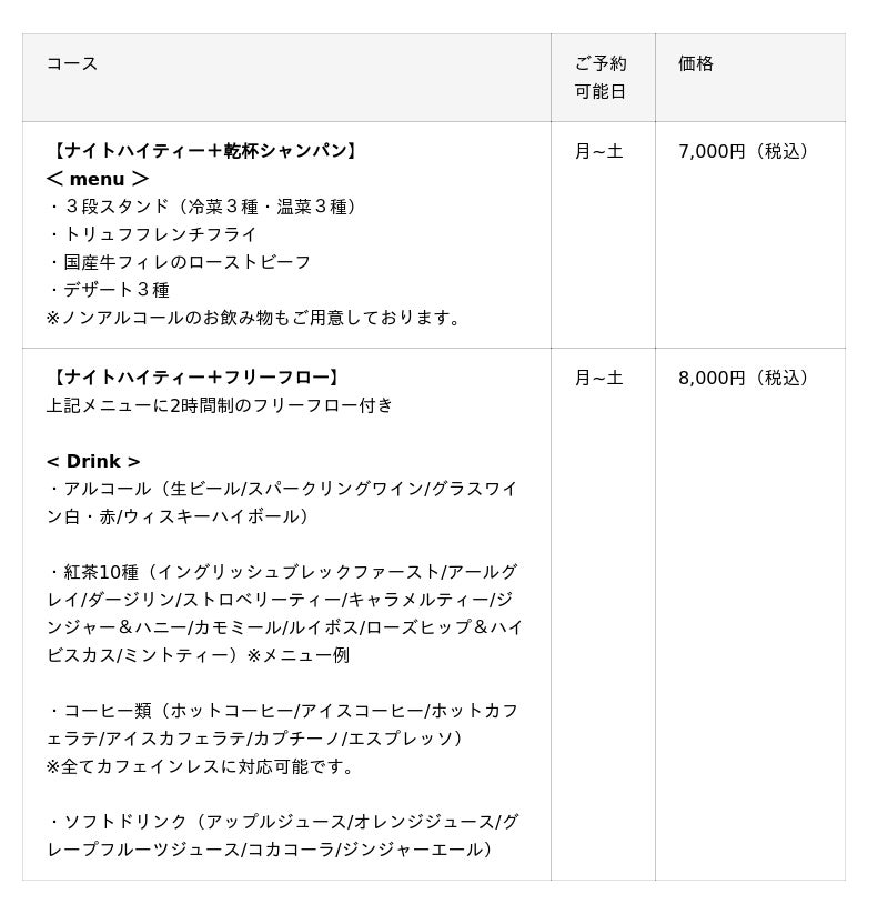 ■ 「ナイトハイティー」詳細