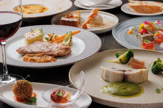 ■料理7種 オードブル・スープ・魚料理・肉料理・デザート・パン・コーヒー